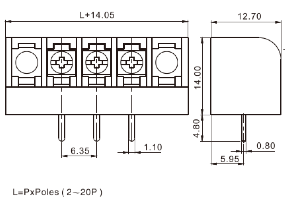 • 腳距(Pitch): 6.35mm、7.62mm、8.25mm、9.5mm…
