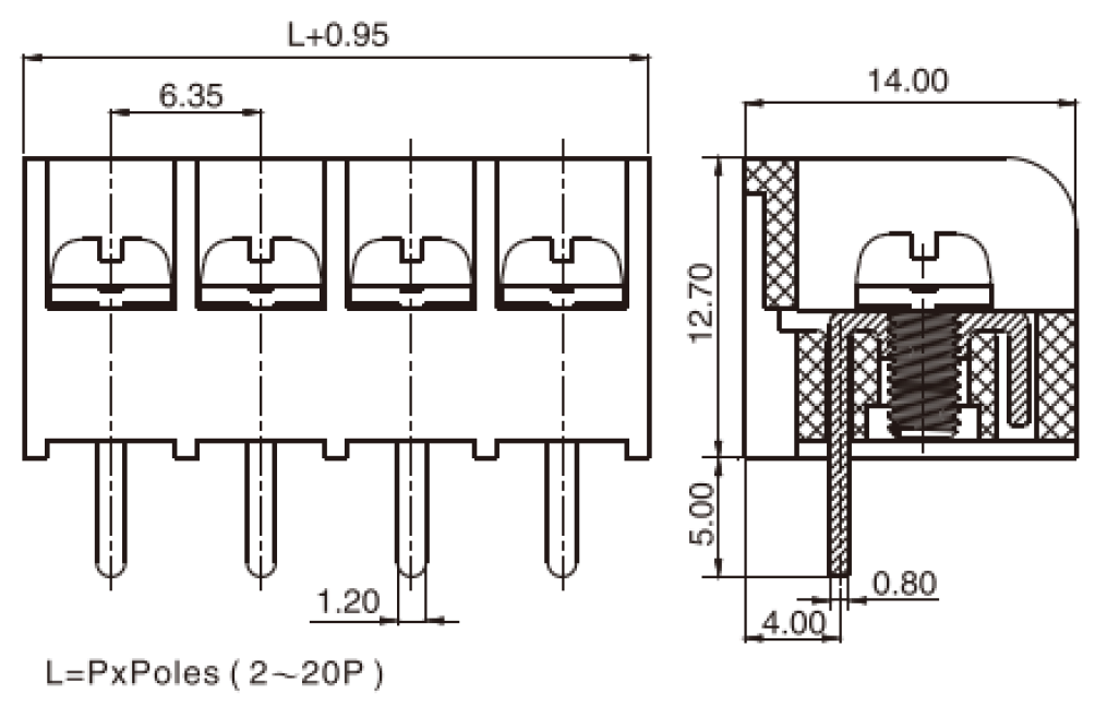 端子間距(Center Spase) 6.35mm
