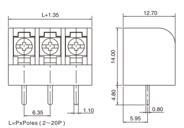 • 腳距(Pitch): 6.35mm、7.62mm、8.25mm、9.5mm…