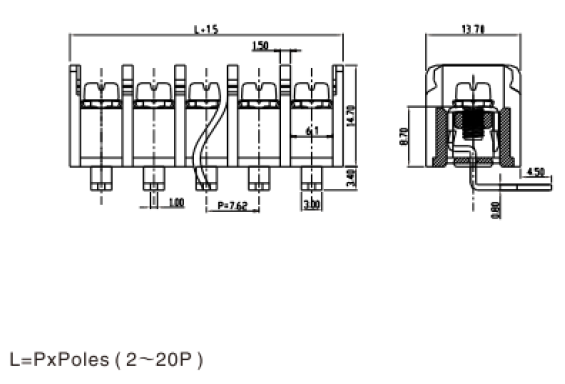 端子間距(Center Spase) 7.62mm