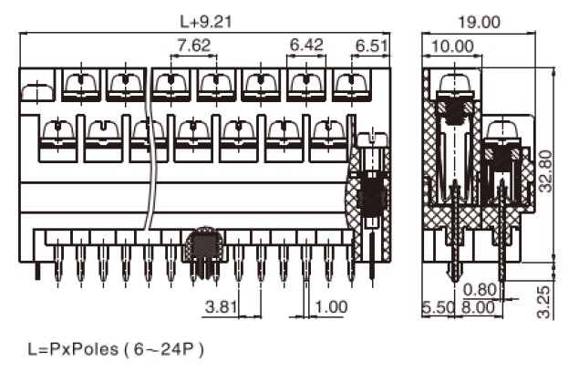 • 腳距(Pitch): 6.35mm、7.62mm、8.25mm、9.5mm…