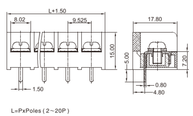 端子間距(Center Spase) 9.52mm