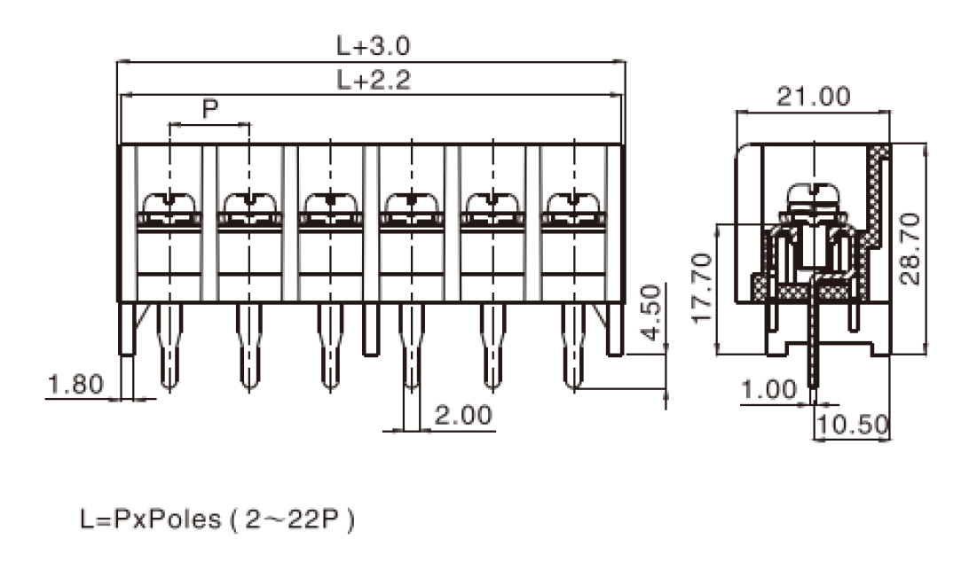 • 腳距(Pitch): 6.35mm、7.62mm、8.25mm、9.5mm…