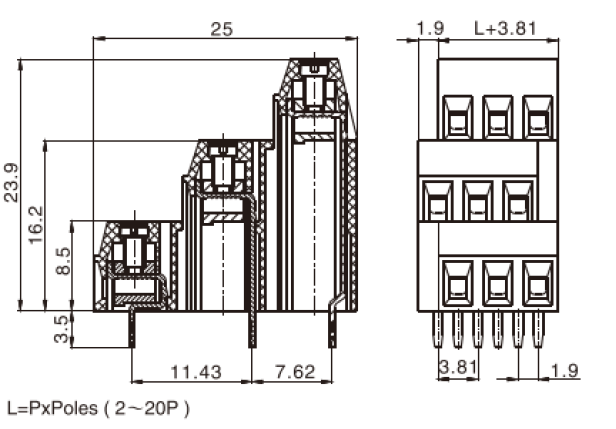• 腳距(Pitch): 3.50/3.81/5.00/7.50 mm